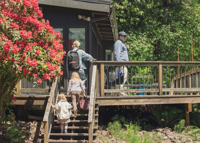 Nestled in the woods of Tillamook, Oregon, River Cabaan is the getaway home of Karie Higgins and Lee Gibson, along with their young daughters, Lo and Rue. Originally from New Zealand and now based in Portland, the couple are design visionaries—Karie, an interior stylist known for her serene, Antipodean-inspired aesthetic, and Lee, a footwear designer with a sharp eye for form and function.
