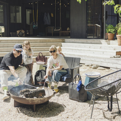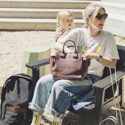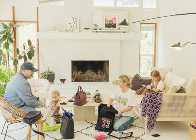 The Cordura Nylon Backpack in Black, and Roadster Large Tote in Dark Indigo also accompanies their trip—practical for family life and travel alike, yet plenty chic to feel at home in any setting.
