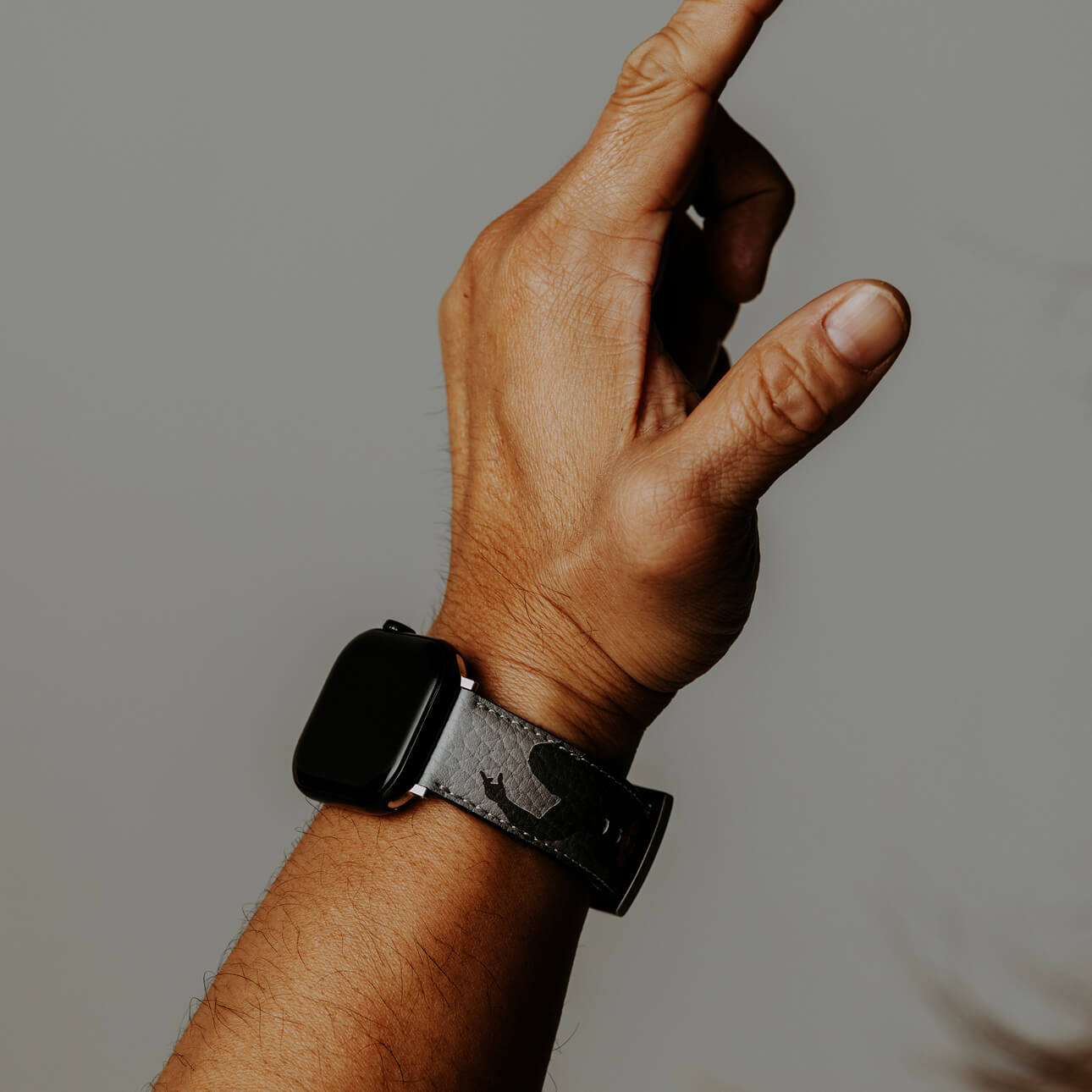 A special leather band for Apple Watch, expertly crafted to showcase its bold graphic design. Each glance at your wrist becomes a reminder of Hiroshi Tanahashi, bringing strength and inspiration to your day.