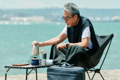 With the morning sun dancing on the waves and a salty breeze on his face, Tony makes his way to a quiet stretch of Shalun Beach with his Ame Waterproof 3Way Travel Bag. There, he brews a rich iced coffee by hand, the aroma drifting into the sea air as the tide laps at the shore. Between sky and surf, he finds a moment of stillness.