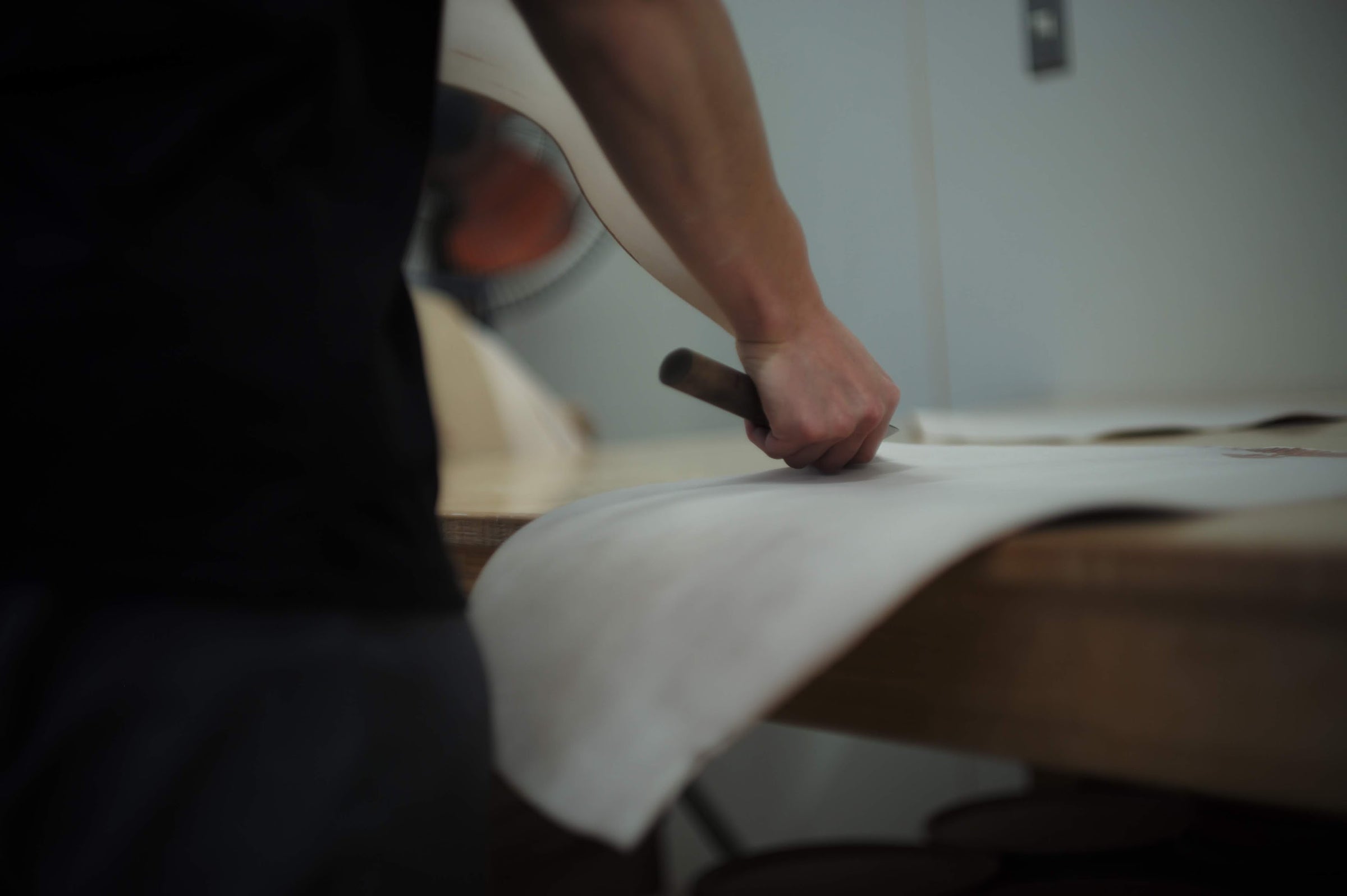 "Once you do it for a long time, you learn to adjust the amount of force to match the unique characteristics of each piece of leather—whether a hide is on the slightly dryer side, or is fully oiled," shares the craftsman.