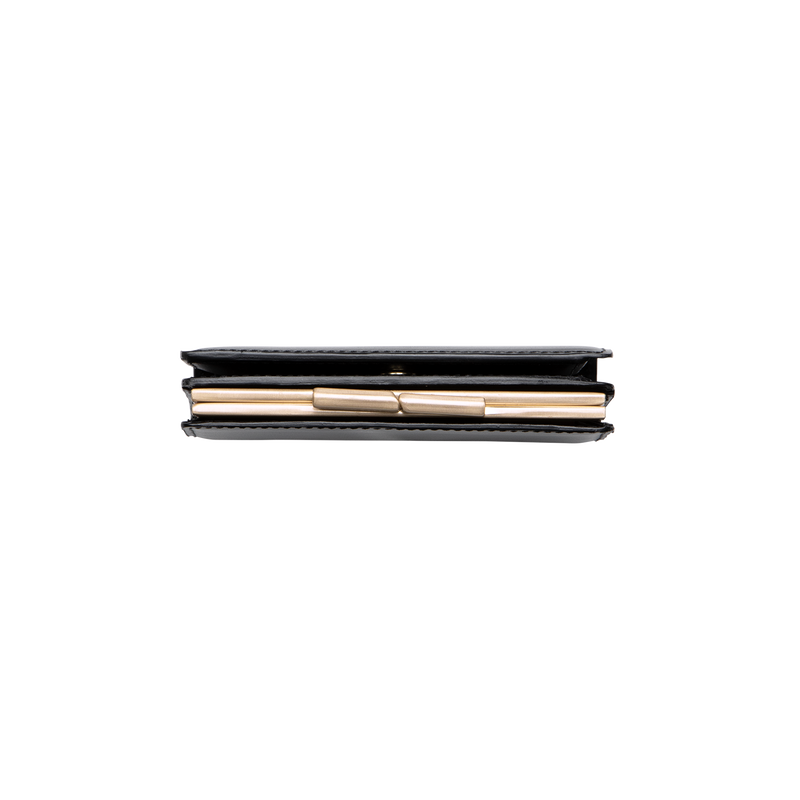 When less is more: luxuriously smooth, semi-gloss Italian Box Calf leather takes center stage in this minimalist bifold wallet. The supple fine-grain leather melts comfortably into your hand, while its polished silhouette and graceful metal clasp bring refinement to your everyday moments.