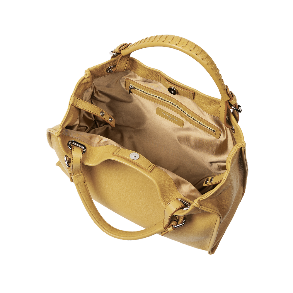 Clarte Arc Carry Tote showcases a soft, rounded silhouette and supple leather. Understated metallic hardware adds sophistication, while an adjustable belt inside lets you customize its shape and capacity for any occasion.- 3 inner pockets: 1 zippered, 2 open for small items