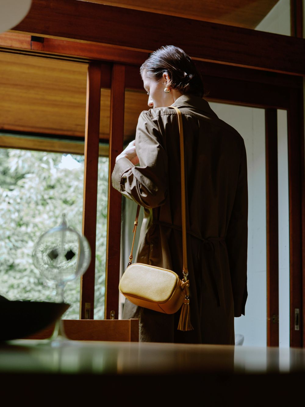 A chic mini box bag with a swinging tassel. Elevate your modern, on-the-go lifestyle with this compact design.