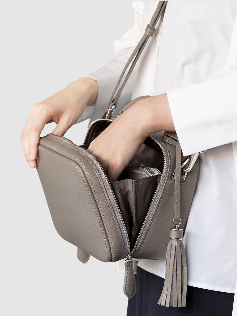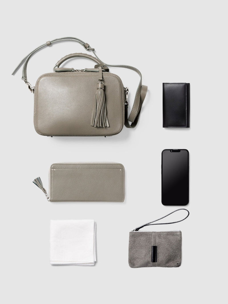 クラルテのインクブルーのバックパックも愛用していますが、定番色のインクブルーとアッシュグレーそれぞれでバックパックとショルダーを揃えたくなるほどどちらの色も穏やかで気に入っています。