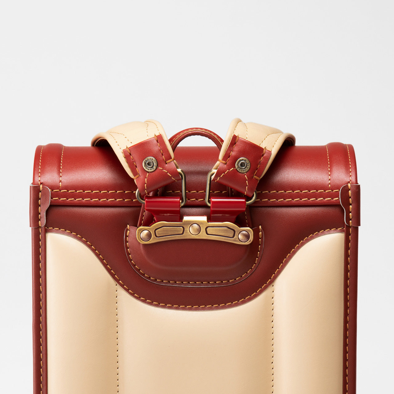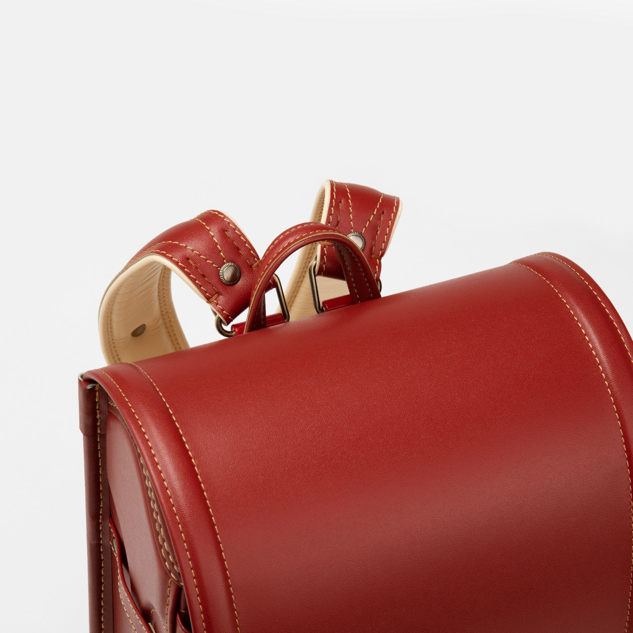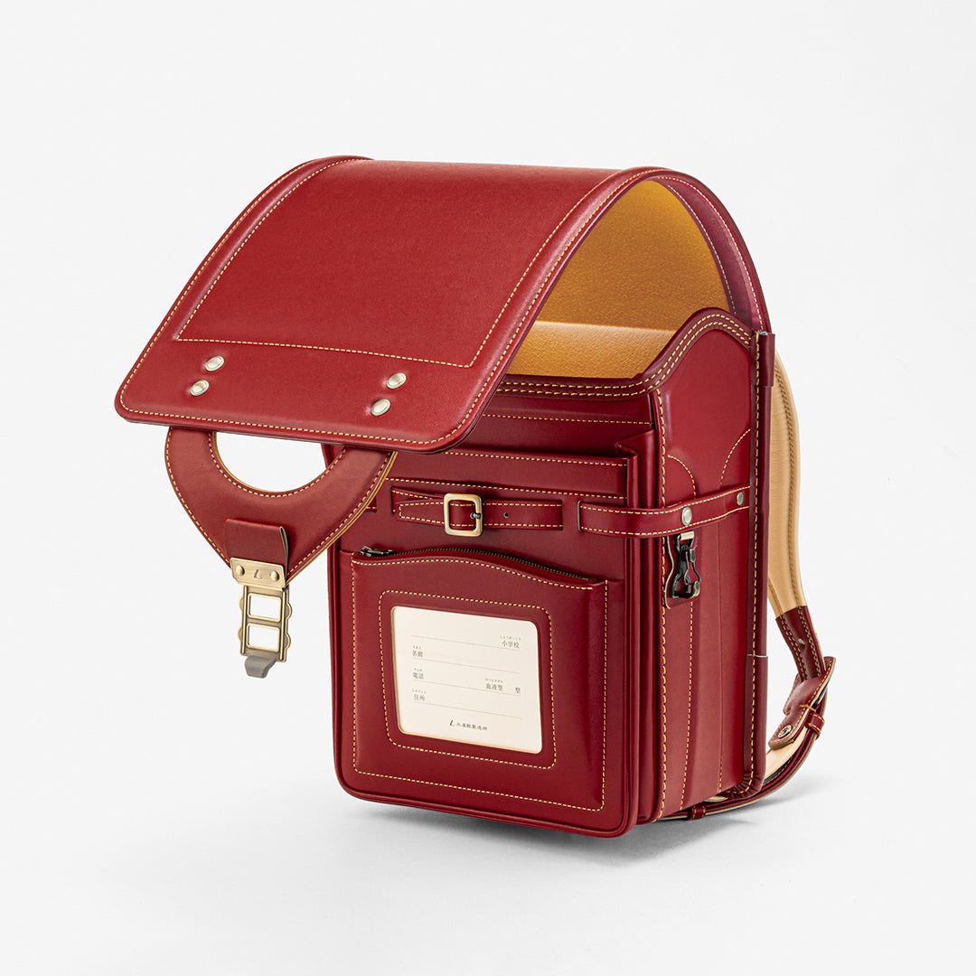 Even after using for a long time, the core material in the box-shaped sides has a double structure of resin and sponge glued together. This allows it to absorb impacts well and maintain its beautiful boxy shape for many years. The durability of the straps, which are prone to wearing out, is ensured in ways such as reinforcing with layers of leather hand stitching.