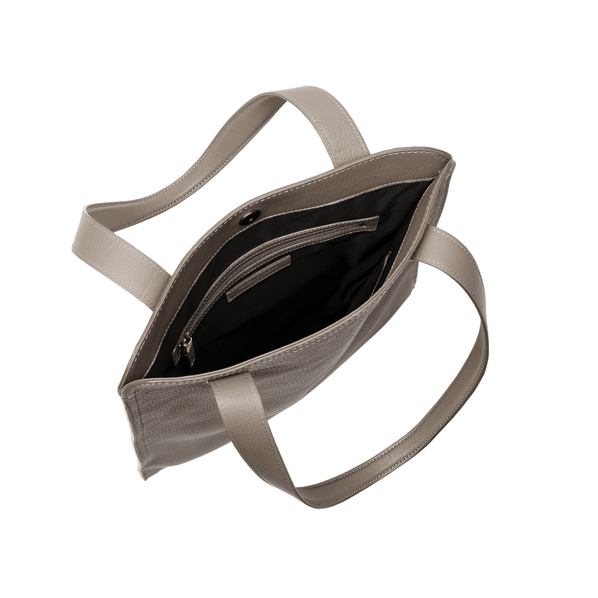Designed with a minimalist profile, this slim tote features an expandable folded bottom that increases storage capacity when needed. The structured yet soft leather provides a refined look, while the thoughtfully placed details, such as a magnetic closure and interior pockets, enhance usability.