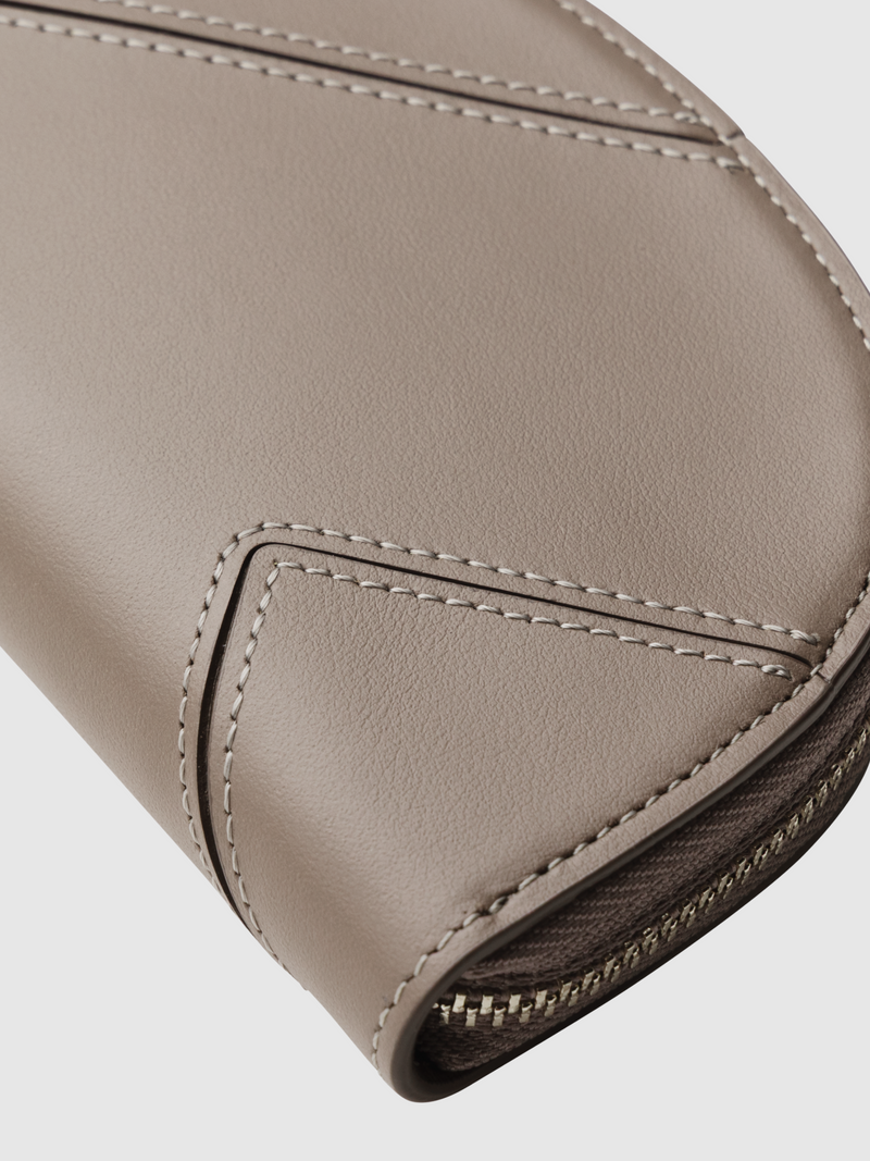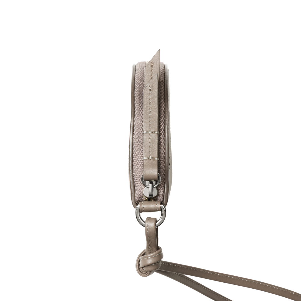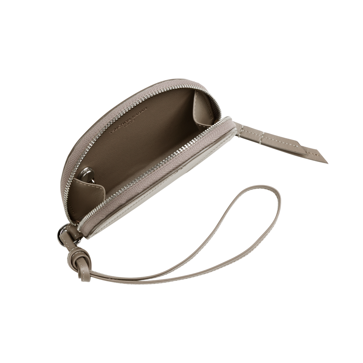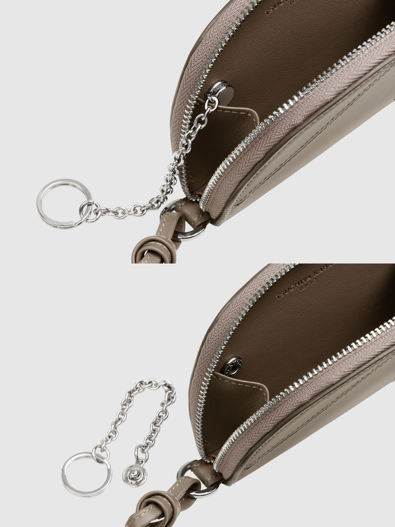 Add a playful detail to your everyday look with this half-moon card case that doubles as a bag charm. Crafted from supple semi-gloss leather and accented with a sleek, geometric “T” motif, it offers both refinement and unique style. Store your essential cards as well as keys with the detachable ring and accessorize your bag, or carry it by the leather strap around your wrist.