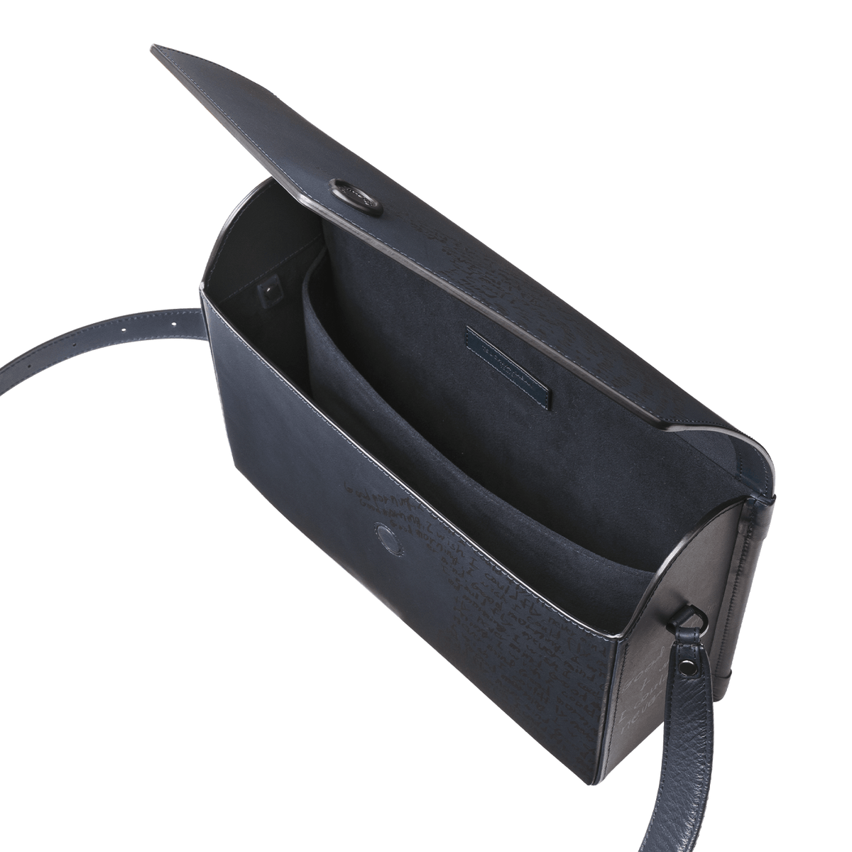 - Magnetic clasp with a wax seal–inspired button for an envelope-like closure