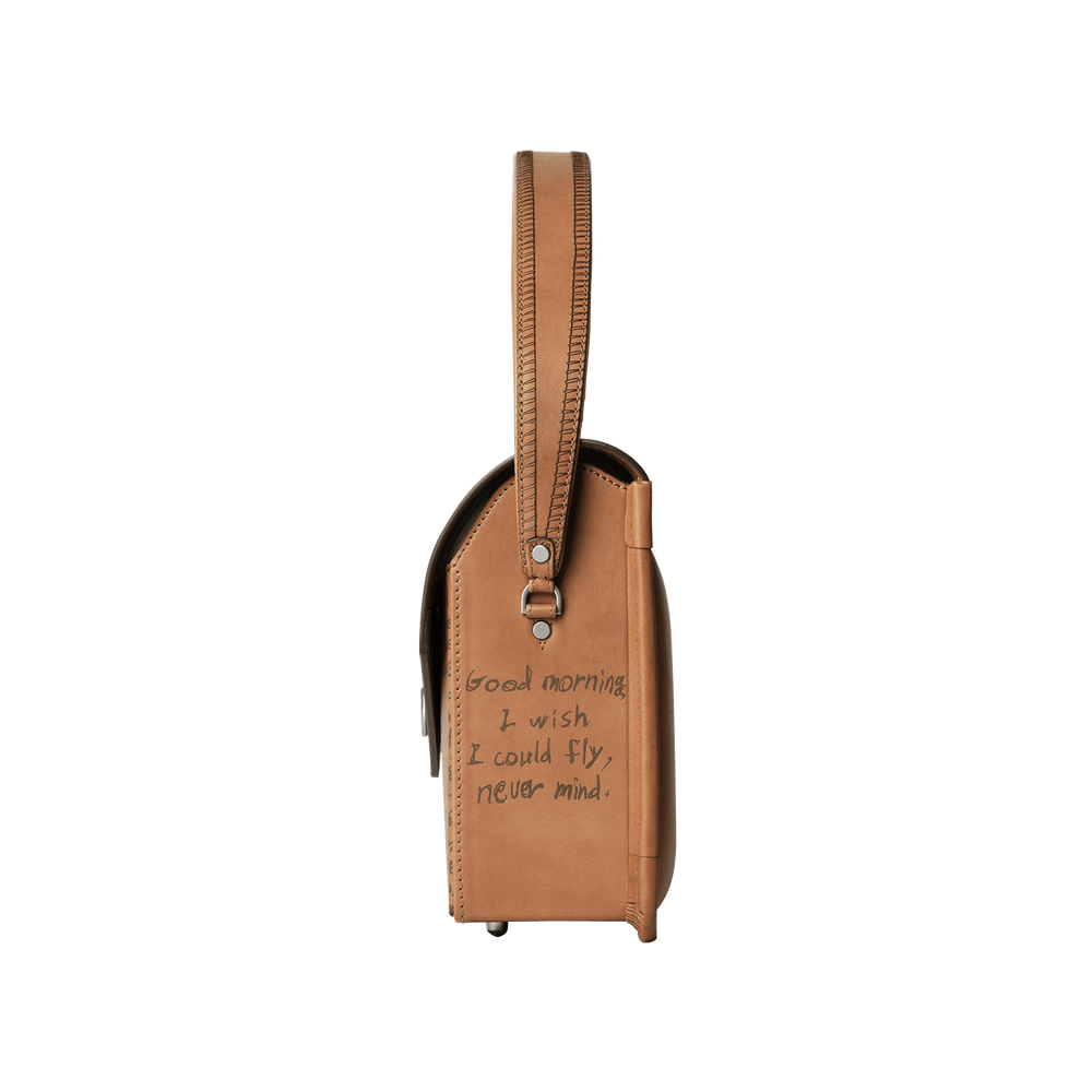 A playful, modern reimagining of the iconic Randoseru, inspired by the charm of a handwritten letter. The latest in our collaboration with Japanese designer SHINYAKOZUKA, this spacious shoulder bag is printed with original, hand-drawn text from the penguin-themed narrative of the designer’s seasonal collection.