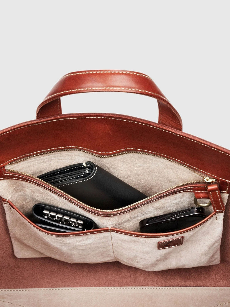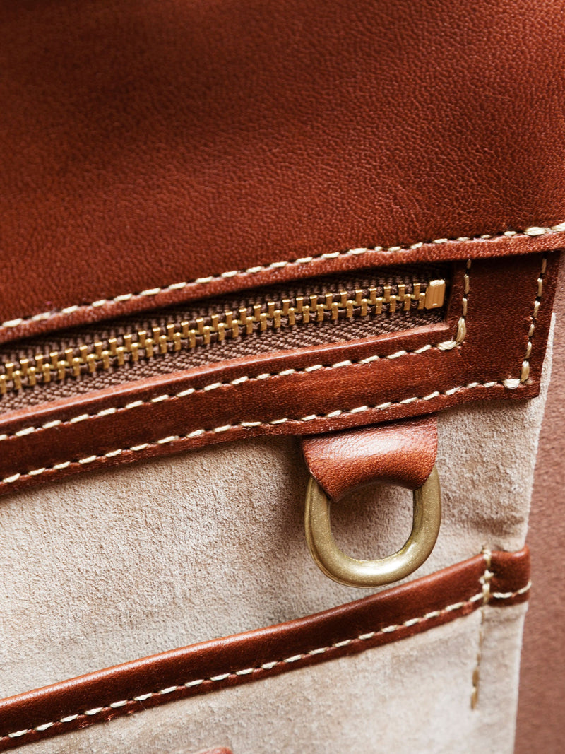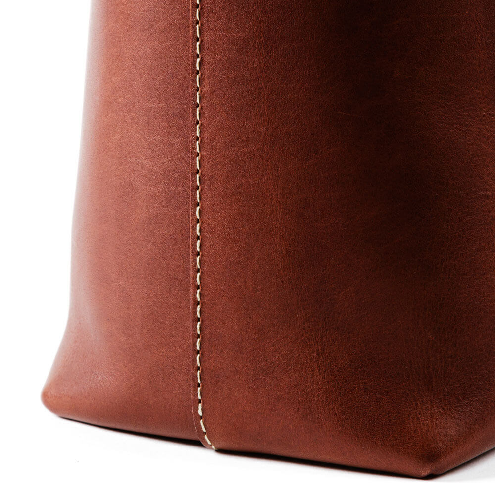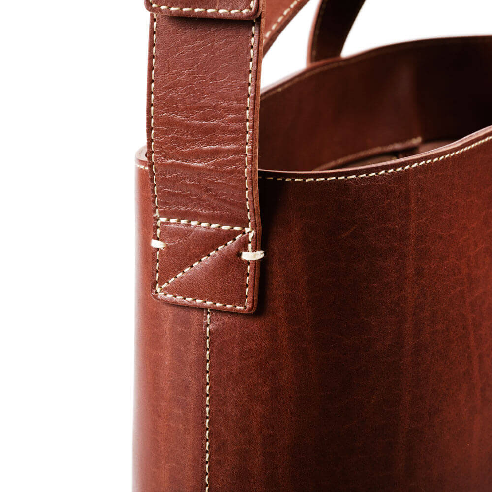 - Reinforced bottom with layered leather for increased durability