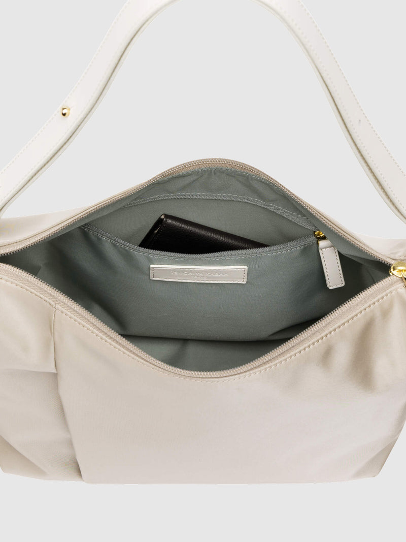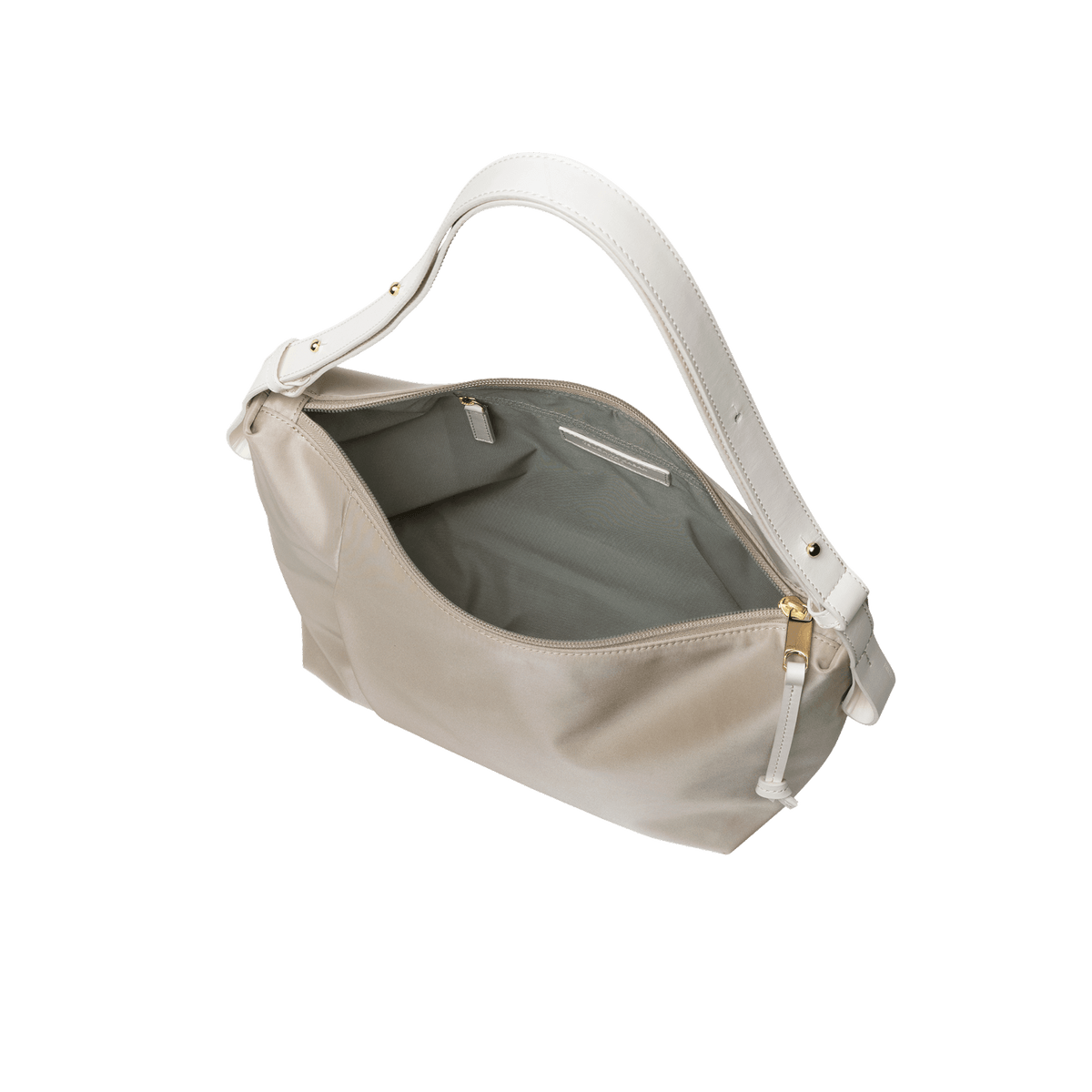 Effortless mobility meets refined design in this lightweight 2-way shoulder bag. Crafted from elegant, semi-gloss nylon and supple cowhide leather, its contoured silhouette is engineered to fit comfortably against the body for an active, hands-free experience. Whether worn as a chic shoulder bag or a practical crossbody, this versatile companion adapts seamlessly to your lifestyle—from the daily school run to weekend travels—bringing a touch of understated luxury to your every movement.