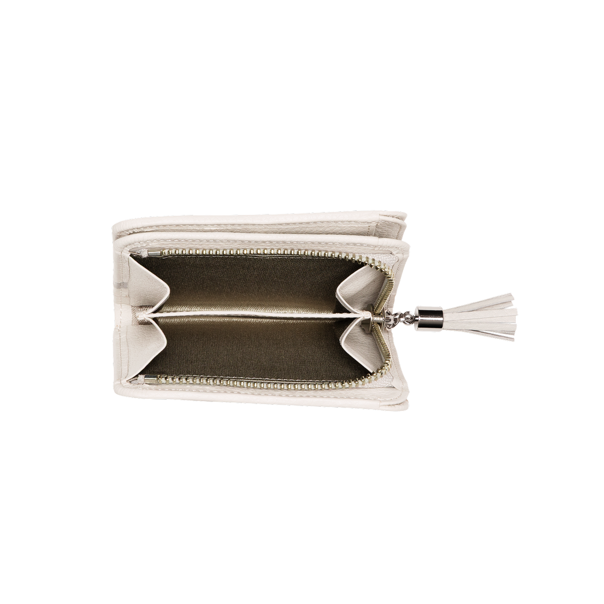 - Coin compartment with divider and L-shaped zipper for easy access