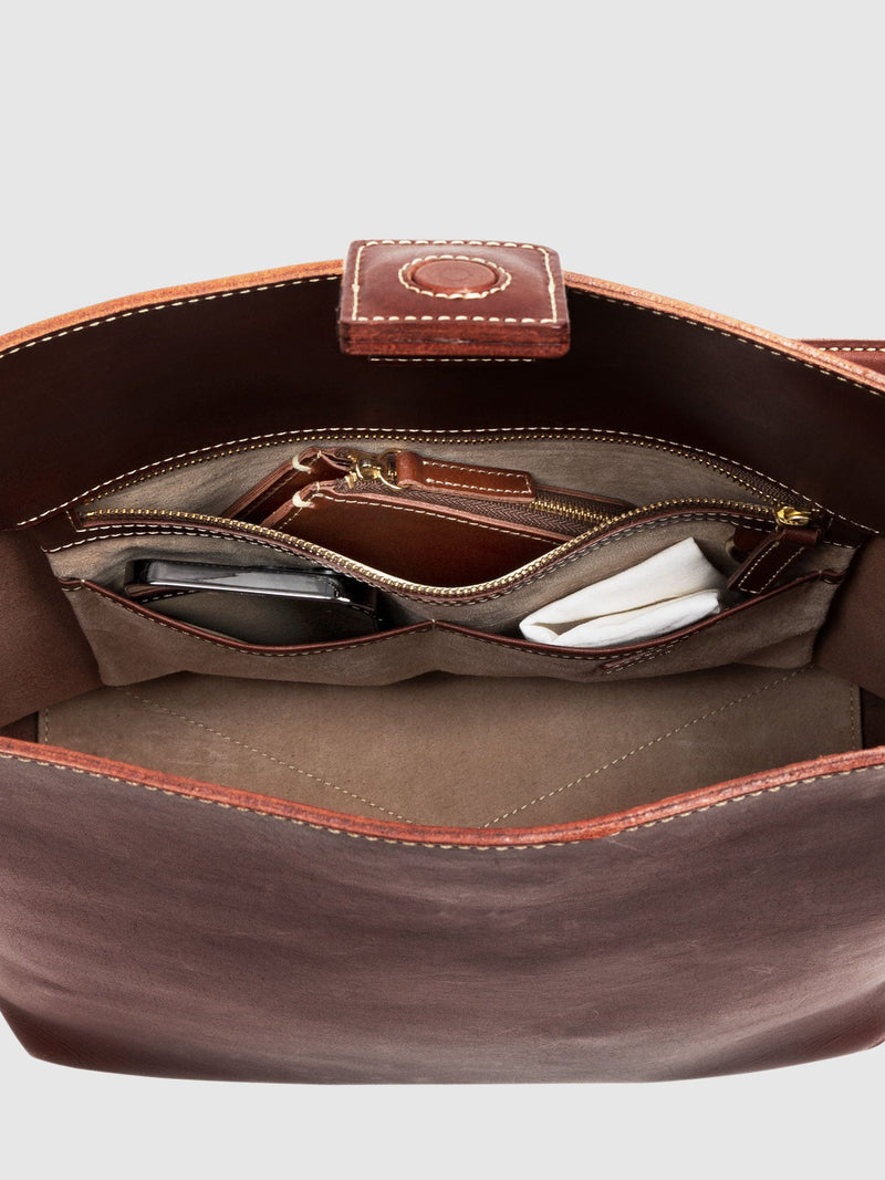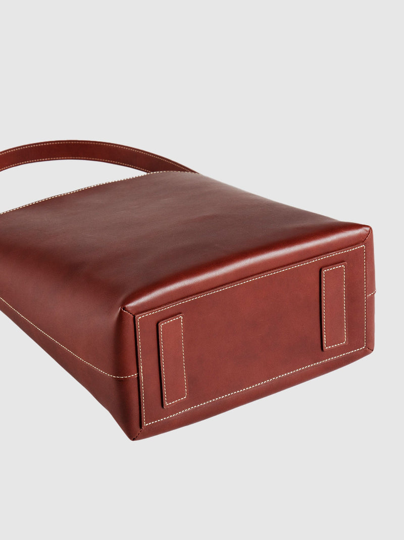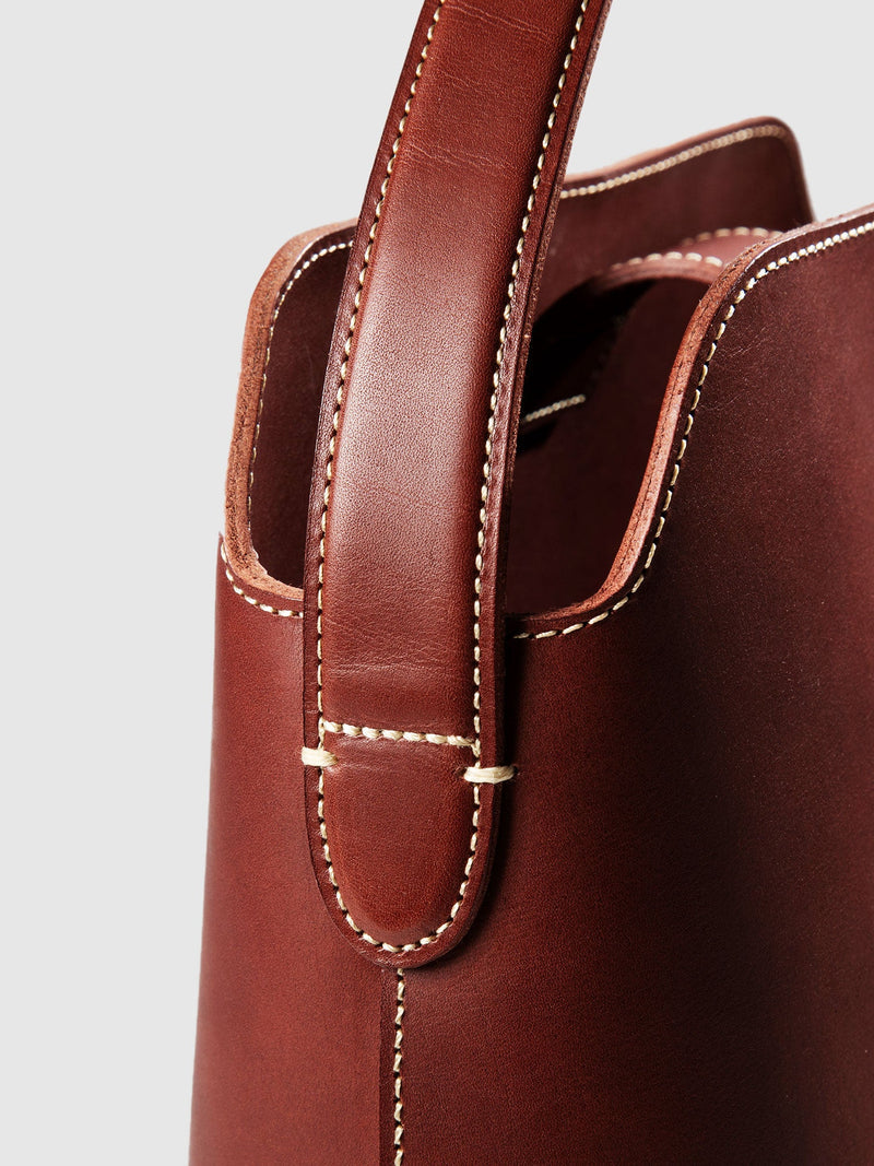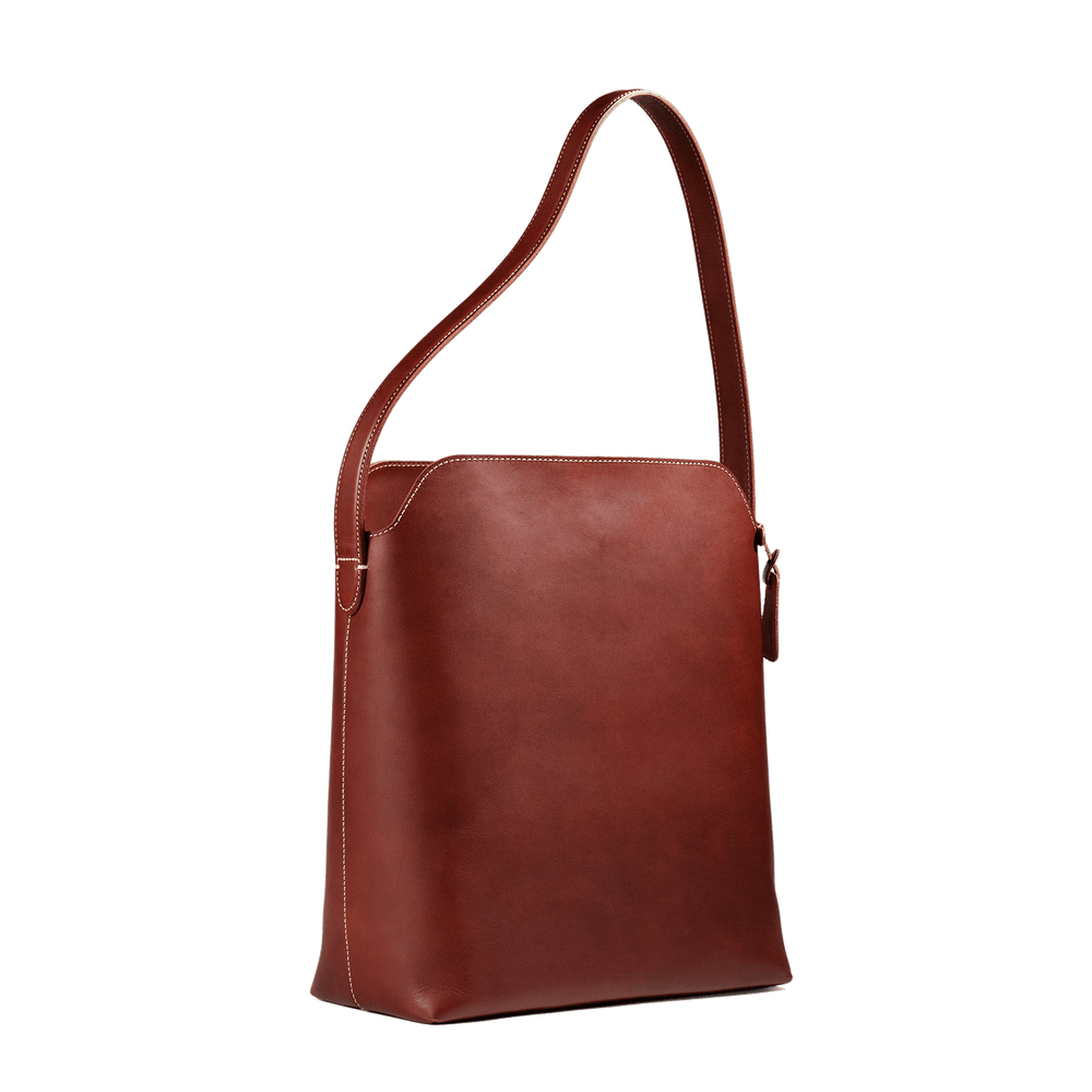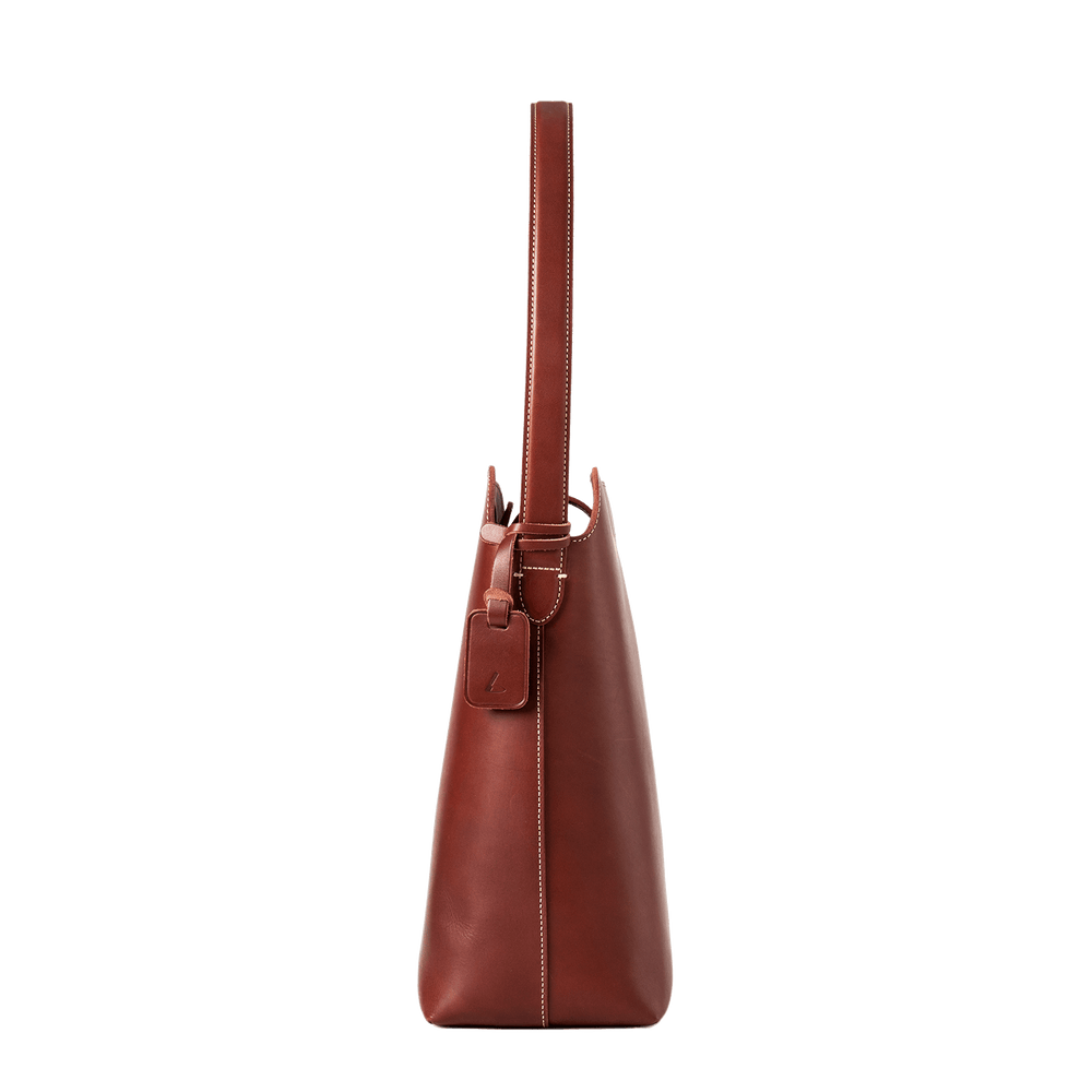 - Durable leather handles crafted to taper at the center for comfortable shoulder placement