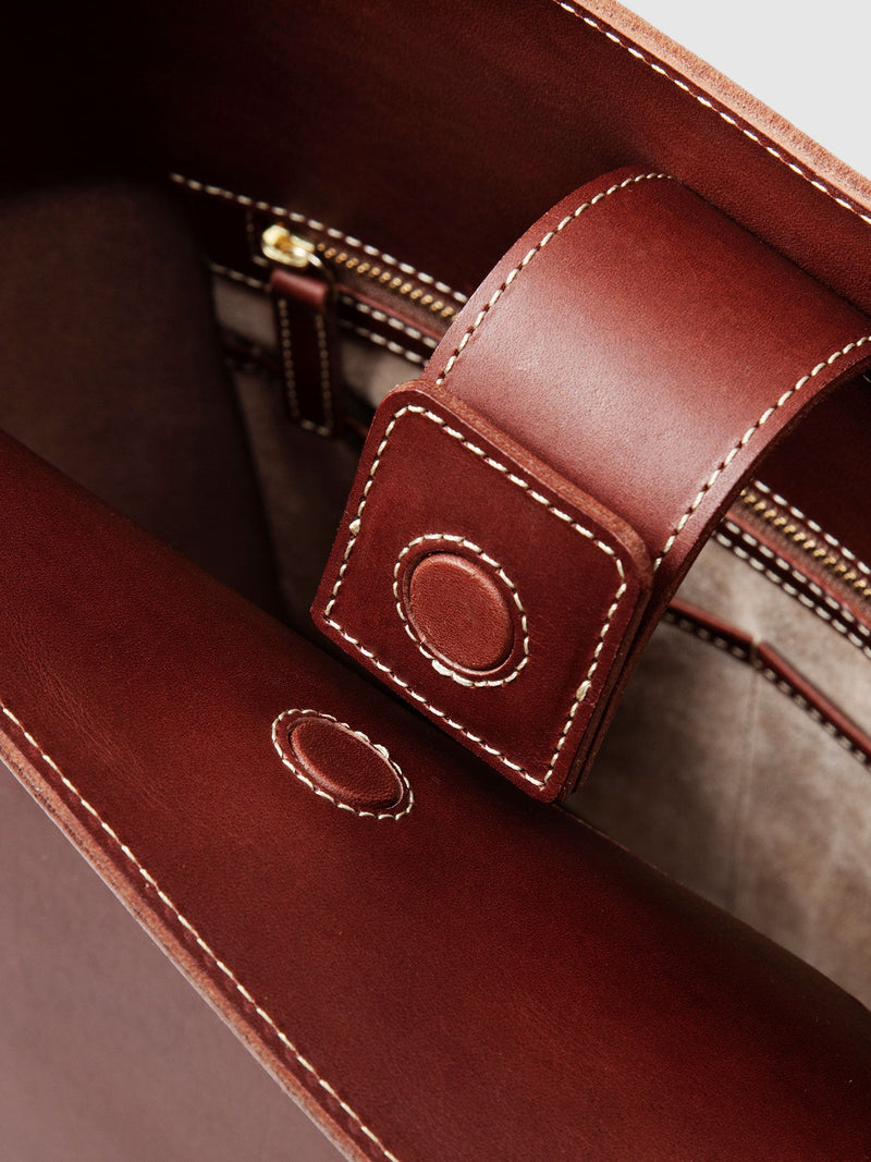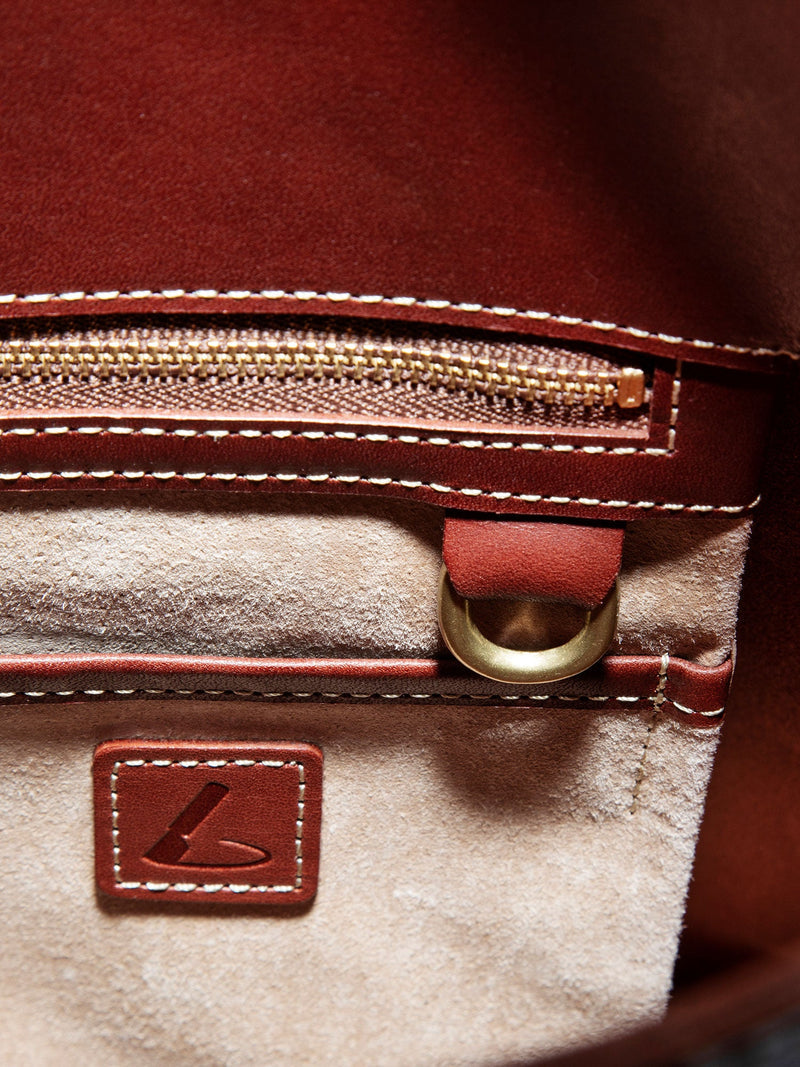 - Sumptuous utilization of a sizable leather piece; its gloss intensifies with use, resulting in a beautifully enriched aging process