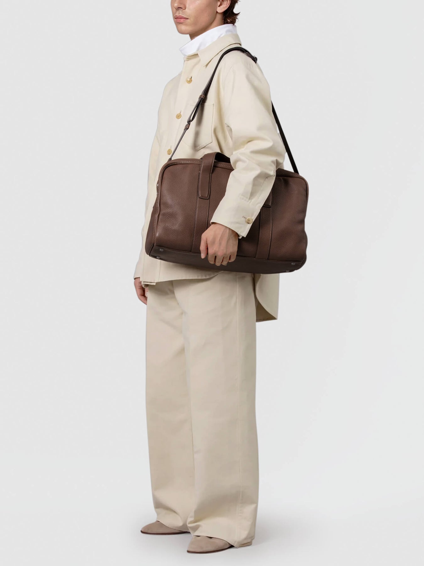 Crafted from supple steerhide leather with a soft feel, it develops character over time while maintaining a sleek, structured silhouette. Perfect for short trips or business travel, it blends elegance with practical functionality.
