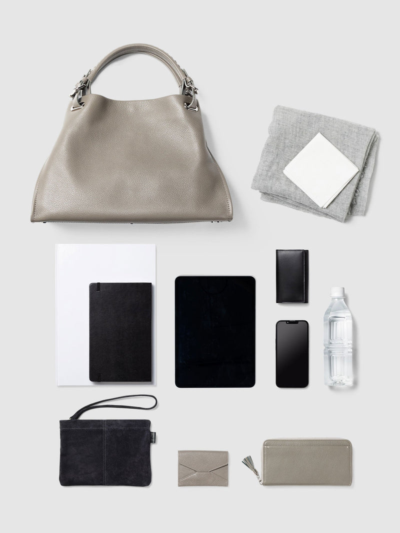 アッシュグレーを通勤バッグとして購入しました。色、形、質感、大変気に入っています。バッグそのものの重さもあり、ノートパソコンを入れると更に重いですが、持ち手が太く肩に食い込まないのでそこまで重さは感じません。大切に使い経年変化を楽しみたいと思います。