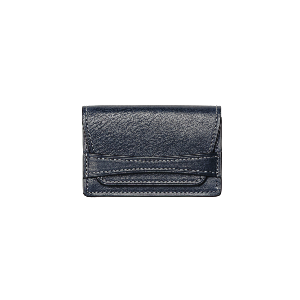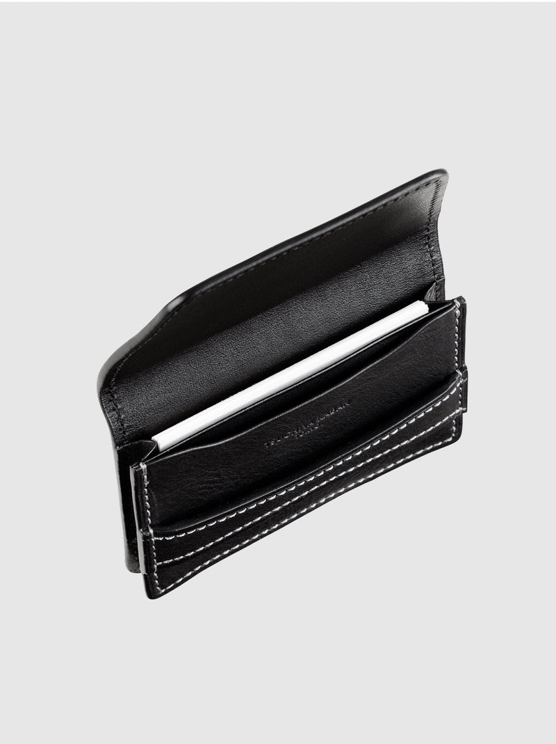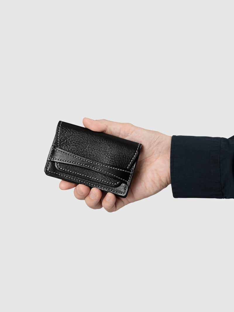 Premium Italian leather and heritage Japanese craftsmanship come together in this distinctive business card case. Designed for the modern professional, its unique belt-closure design and precise stitchwork make for a refined first impression in any business setting. Over time, the premium leather develops a elegant sheen and rich patina, reflecting your journey as it ages gracefully.