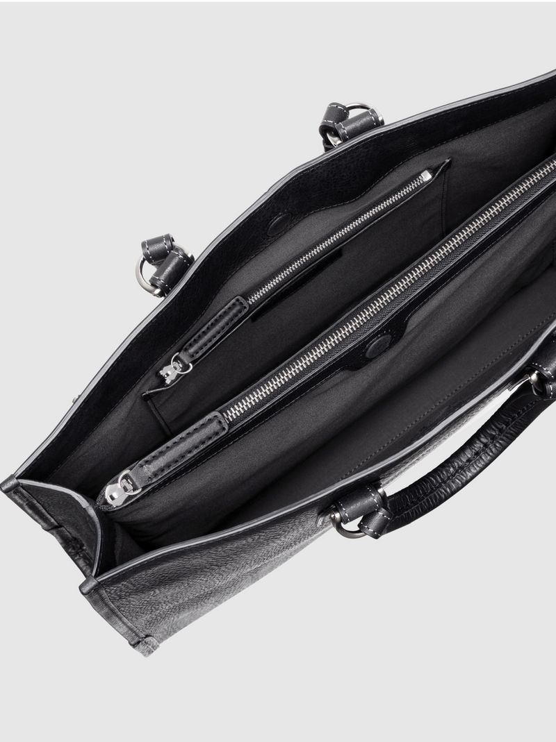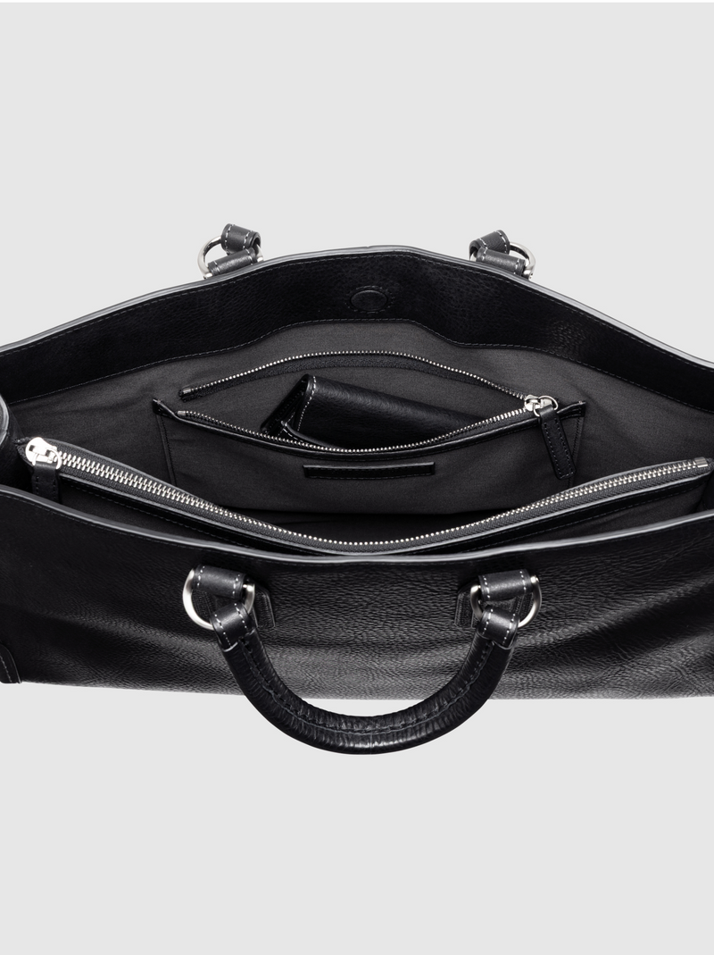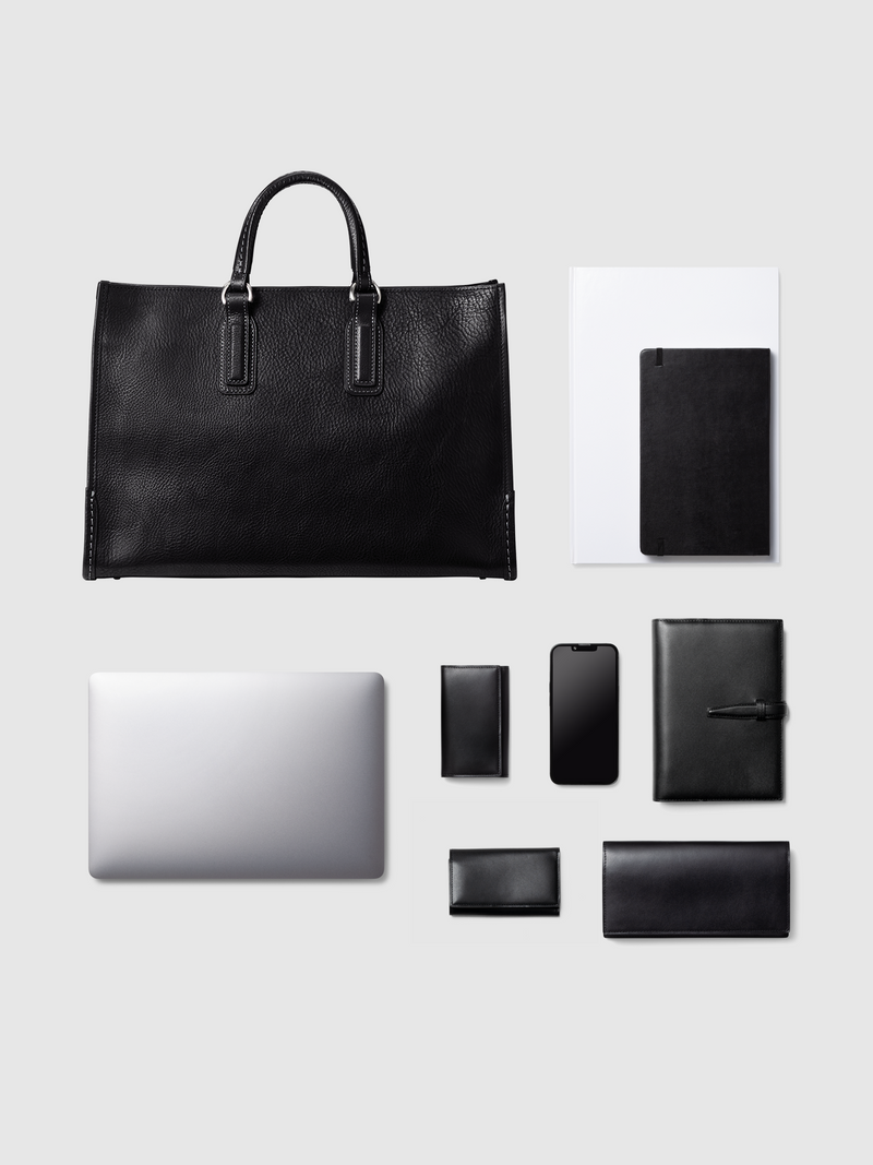 Premium Italian leather and heritage Japanese craftsmanship come together in this exceptional work bag for the modern professional. Authentic Vachetta leather develops a gem-like luminosity over time, bringing rich character and quiet authority to everyday moments. A thoughtful double-compartment layout with zippered pockets ensures effortless organization.