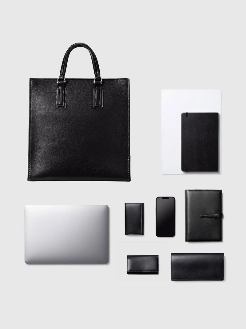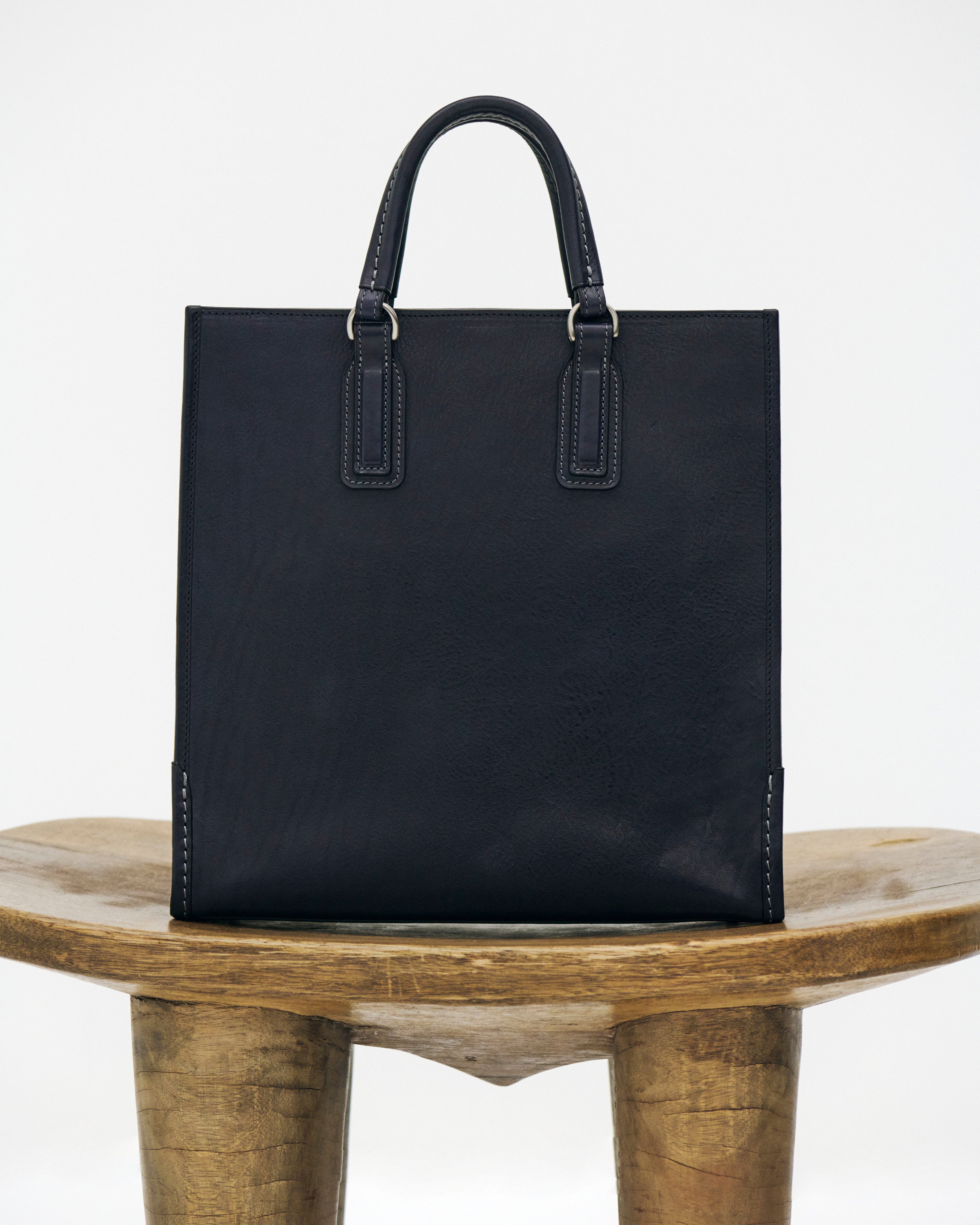 Premium Italian leather and heritage Japanese craftsmanship come together in this refined vertical tote. Designed for the modern professional, its upright silhouette offers a chic, modern alternative to the traditional briefcase. Luxuriously crafted from a single, seamless piece of authentic Vachetta leather, it develops an elegant luster and a rich patina that reflects your journey over time.