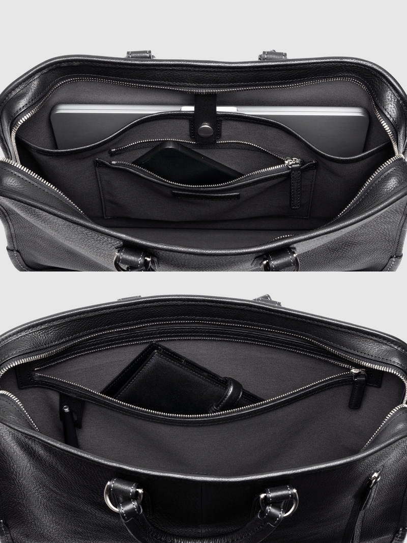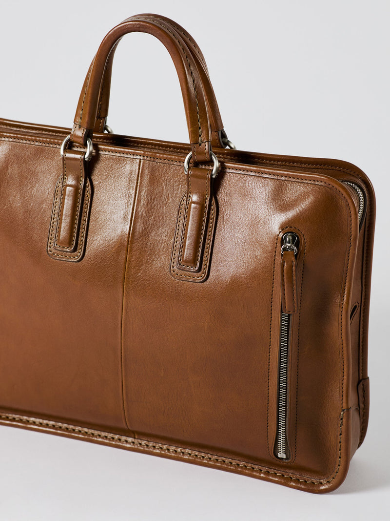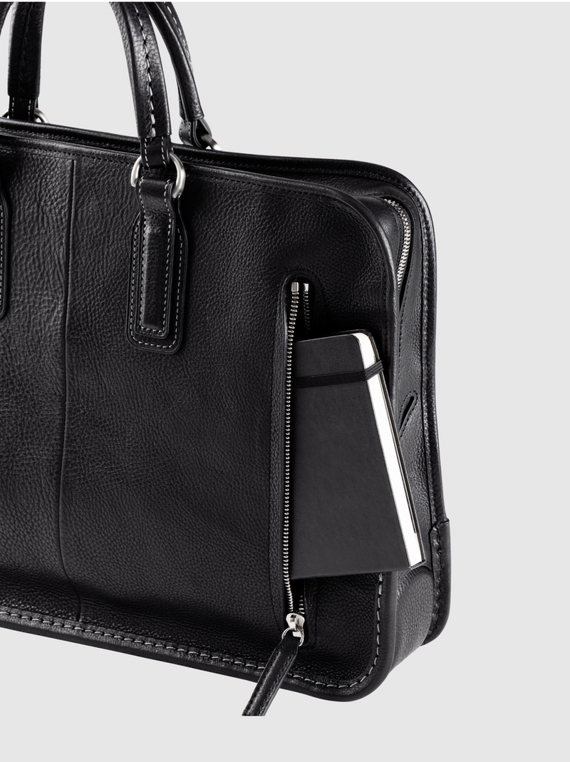 Premium Italian leather and heritage Japanese craftsmanship come together in this exceptional leather briefcase. Designed to elevate your professional life, it highlights the leahter's natural grain as well as a deepening patina that reflects your journey over time. Robust construction, delicate stitchwork, and thoughtful details lend elegance and quiet authority to every setting.