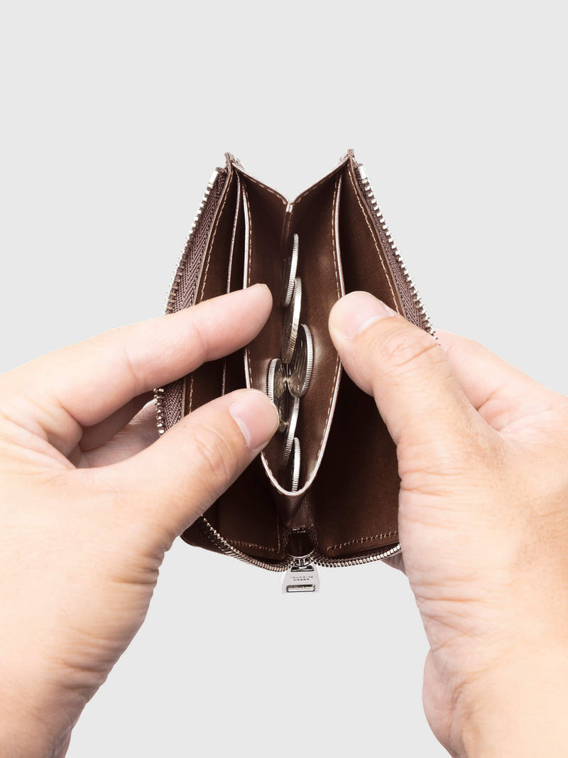 - Central gusseted coin pocket for easy access