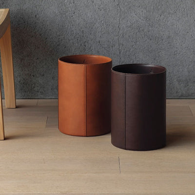 It's a casual item and yet a luxurious one too. This is a waste basket that harnesses the natural charm of leather and stands elegantly. On the exterior, we used vegetable-tanned leather whose color and luster increase as time goes by. The interior is made with our Waterproof Fine Leather that is resistant to water and can be cleaned easily. Besides using it as a waste basket, we recommend it as something to hold blankets or more. The leather, which has a refined texture of its own, upgrades the quality of your living space just by placing the basket down.