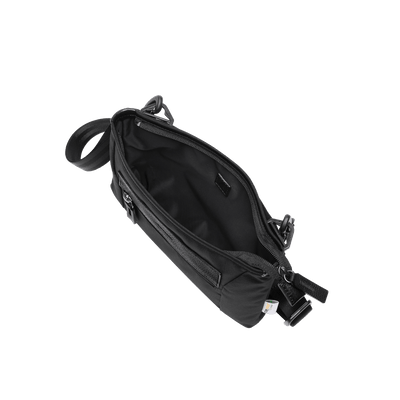 Bring ease and style to your everyday with this multi-use, lightweight design. Compact yet equipped with multiple pockets and plenty of room for your essentials, this flat design can be worn seamlessly with any outfit. Adjust the strap to comfortably wear it as a cross-body sling, or remove the straps to use as a standalone pouch. The waterproof nylon brings sleekness and ease, rain or shine.- With two exterior pockets and one internal pocket, enjoy ample space for keys and smartphones
