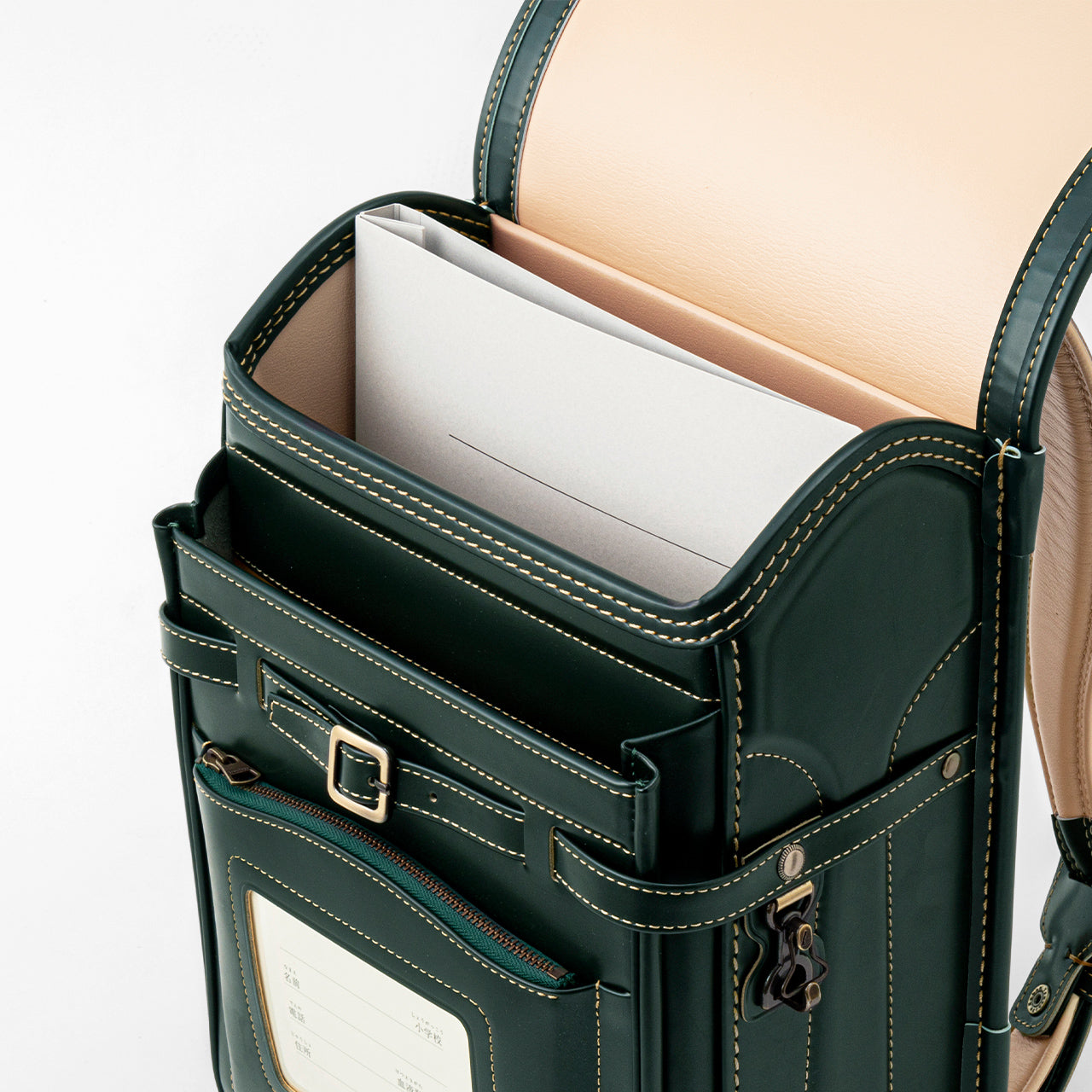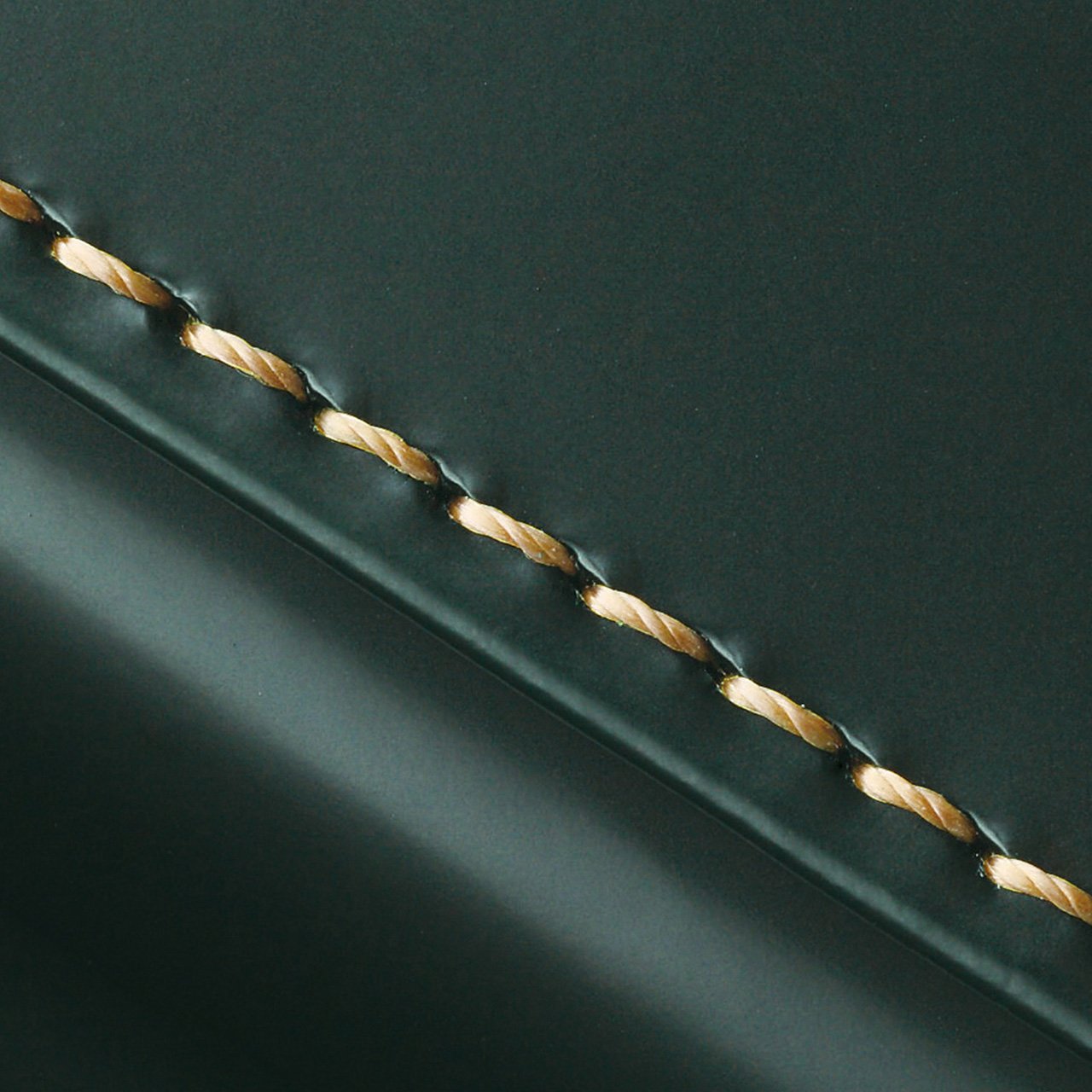 Even after using for a long time, the core material in the box-shaped sides has a double structure of resin and sponge glued together. This allows it to absorb impacts well and maintain its beautiful boxy shape for many years. The durability of the straps, which are prone to wearing out, is ensured in ways such as reinforcing with layers of leather hand stitching.