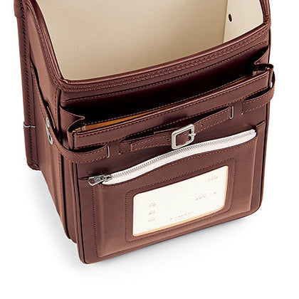 Even after using for a long time, the core material in the box-shaped sides has a double structure of resin and sponge glued together. This allows it to absorb impacts well and maintain its beautiful boxy shape for many years. The durability of the straps, which are prone to wearing out, is ensured in ways such as reinforcing with layers of leather hand stitching.