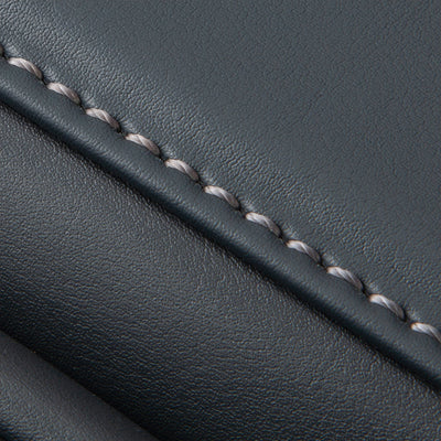 The leather's surface has a bumpy pattern pressed into it, making it both hard to scratch and hard to notice scratches when they do occur.
