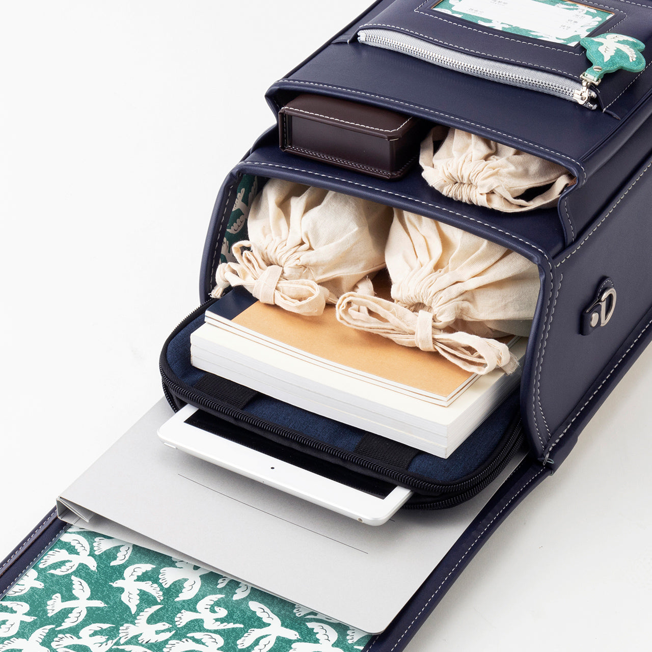 The iconic Japanese school bag perfected over 60 years of leather craft, this time with an artistic spin in collaboration with beloved Tokyo-based brand minä perhonen. Enjoyed around the world by all ages, this beautiful and durable design requires 150 parts and over 300 steps to assemble. Lined with colorful minä perhonen patterns and complete with all the thoughtful details of our classic Randoseru, it’s ideal for both daily use and as a statement piece.