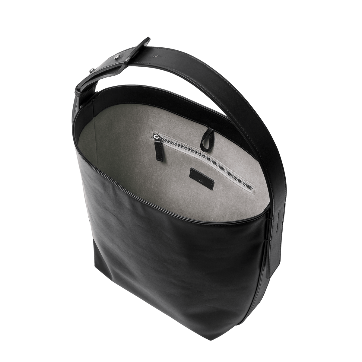 - The strap is adjustable in 5 different positions, and is made with a thicker leather to create a sharp contrast with the soft silhouette of the bag