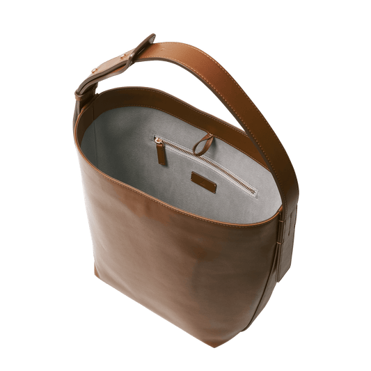 Make a statement with this fashion forward High-Gloss Leather: Our special "High-Gloss Leather” is made by our own unique combination of tanning and leather ironing techniques, resulting in a super smooth, high-shine leather that works beautifully in soft-yet-structured designs, like this Medium Bucket Tote.