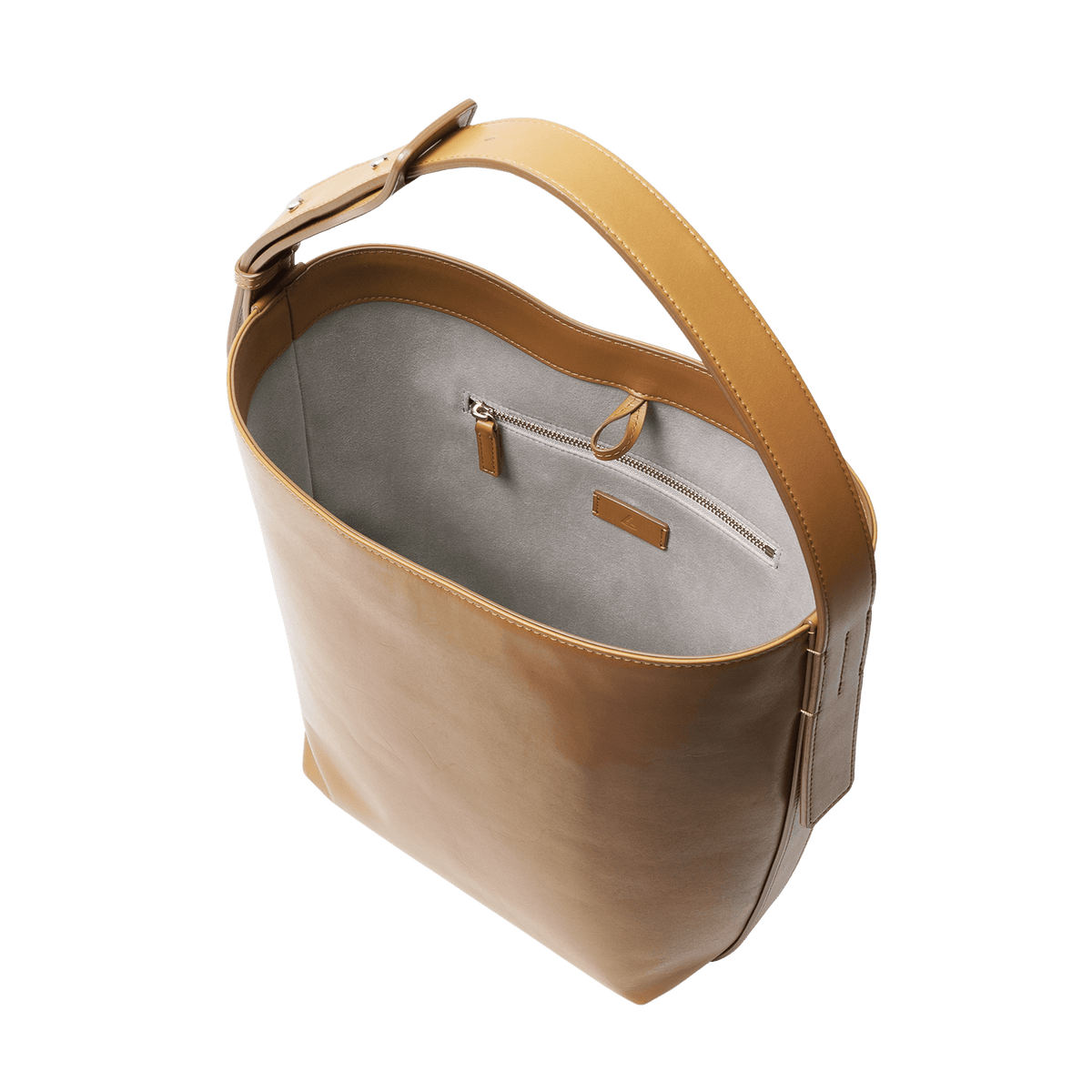 Make a statement with this fashion forward High-Gloss Leather: Our special "High-Gloss Leather” is made by our own unique combination of tanning and leather ironing techniques, resulting in a super smooth, high-shine leather that works beautifully in soft-yet-structured designs, like this Medium Bucket Tote.