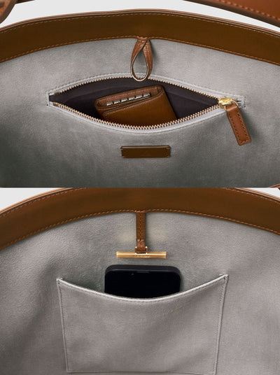 - The design features a gusset, allowing the tote bag to accommodate an iPad Pro 11" and other essentials