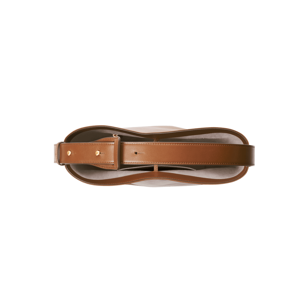 - The strap is adjustable in 5 different positions, and is made with a thicker leather to create a sharp contrast with the soft silhouette of the bag