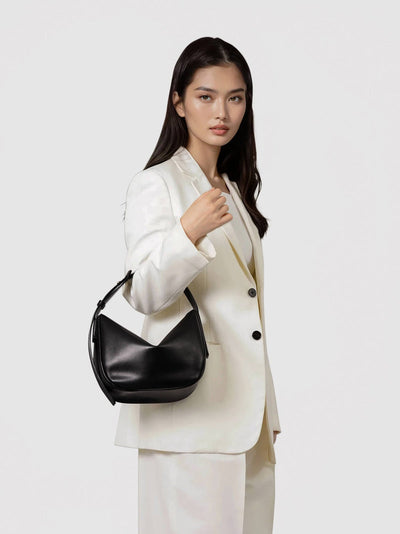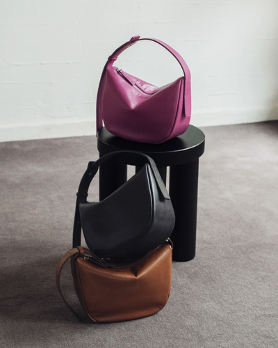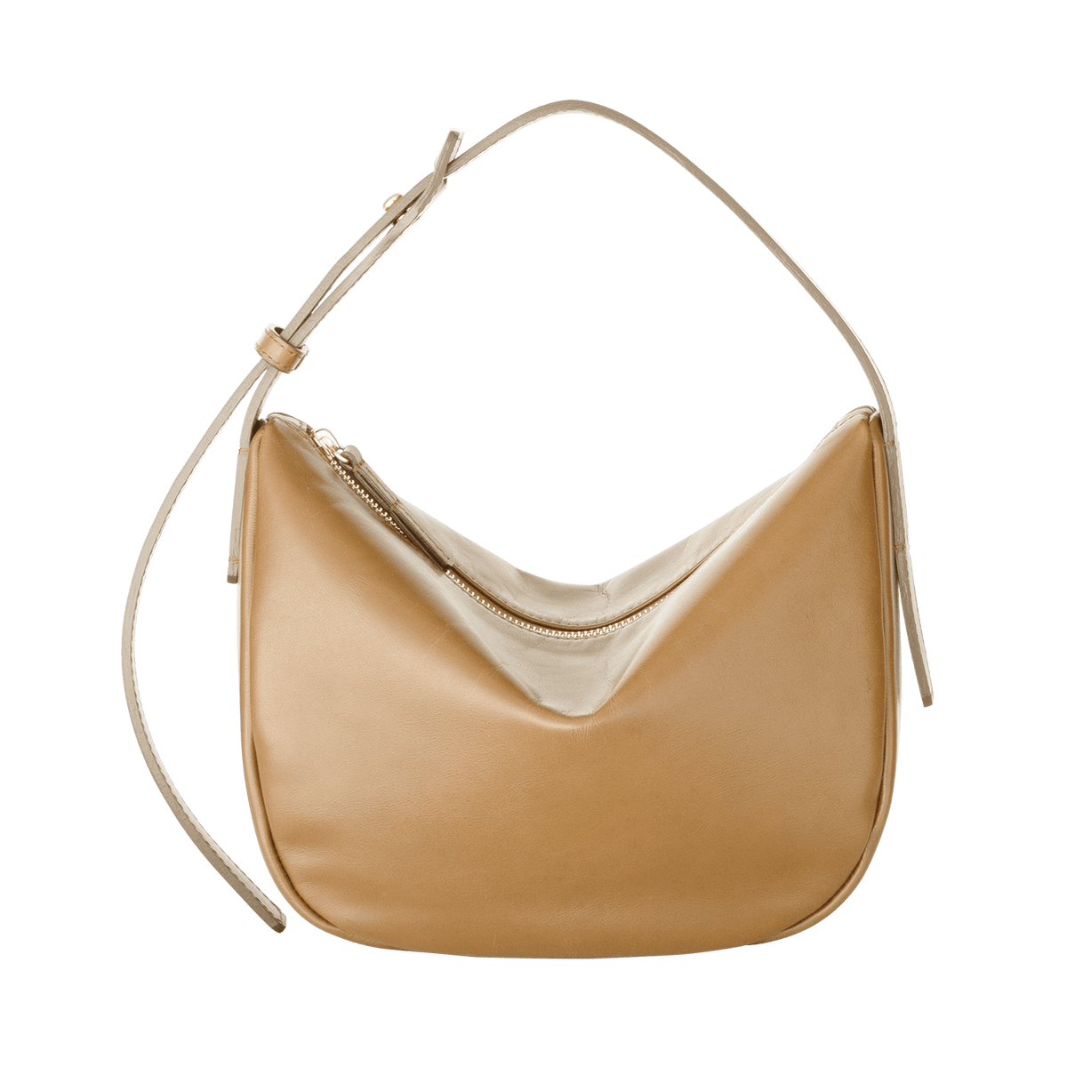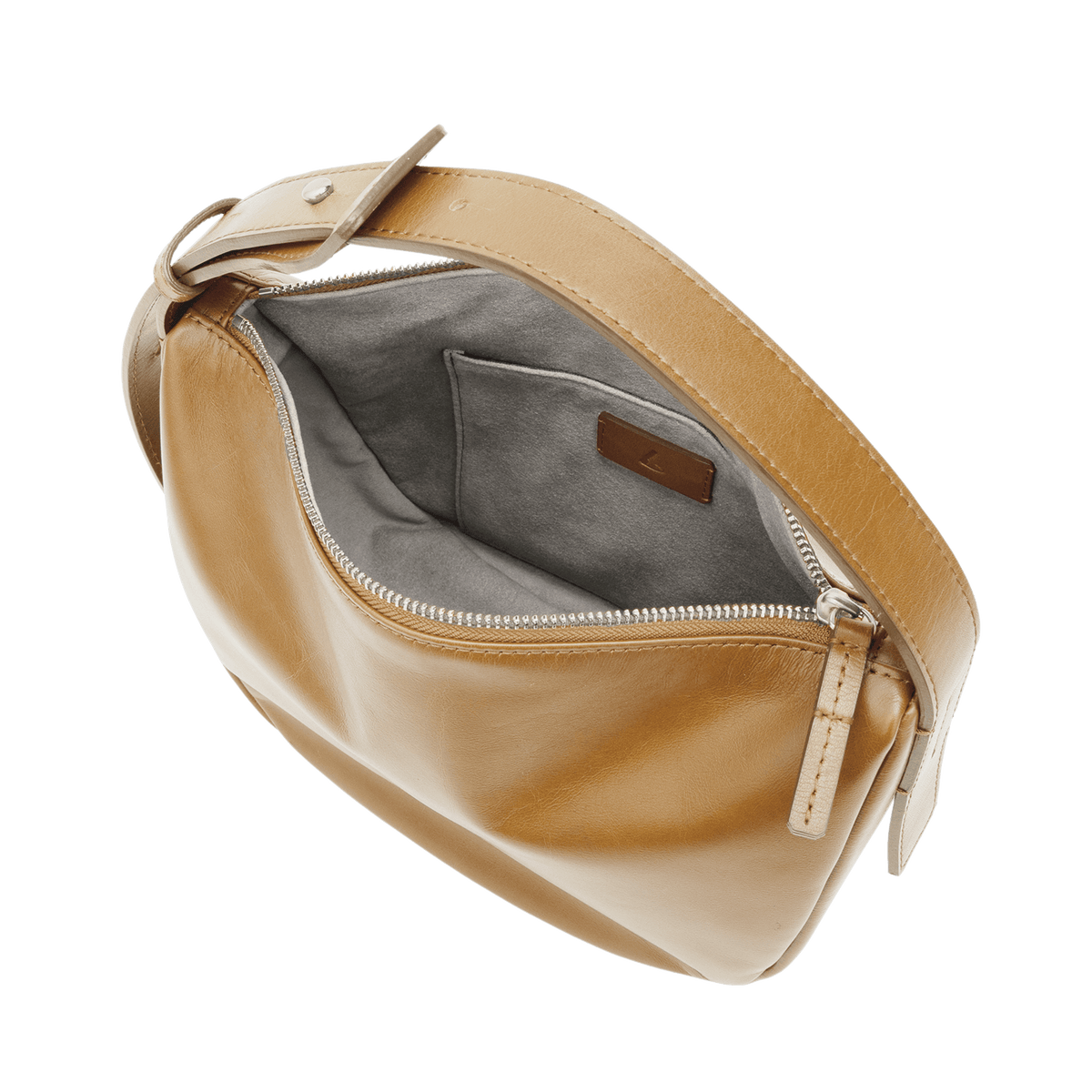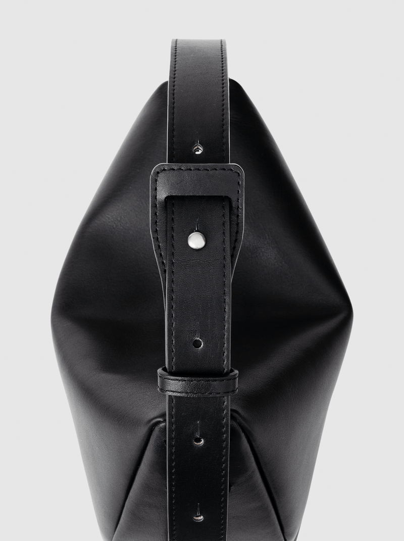 This charming mini bag captures the organic beauty of leather’s natural volume—like a soft sculpture in motion. While the main body has a relaxed feel, the handle adds contrast with its structured, bold shape. A playful piece that brings personality to your weekend style.